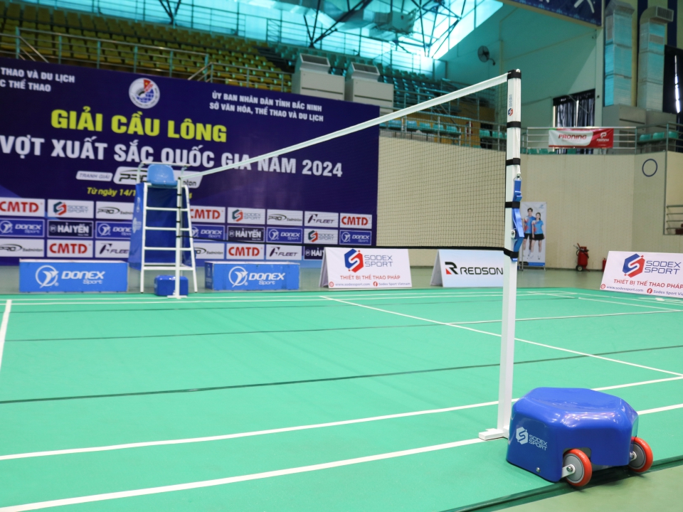 The competition badminton net has 5 velcro strips on each side to ensure the net hangs straight along the posts.