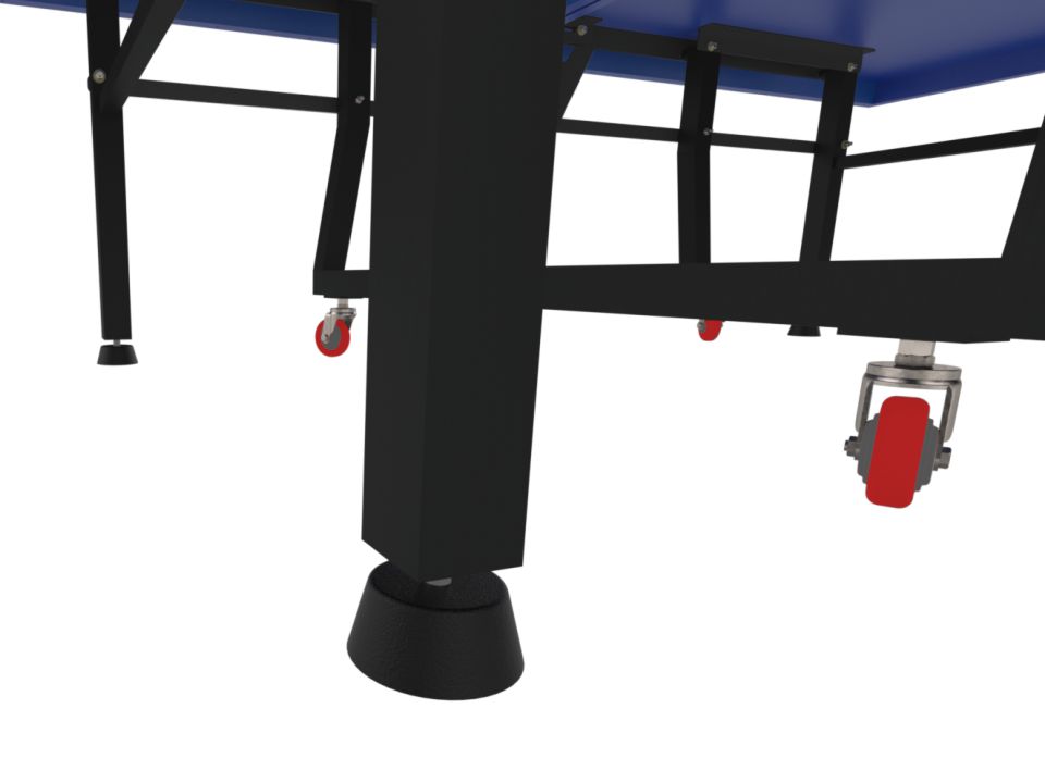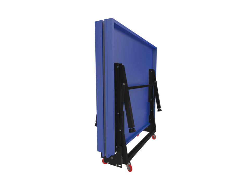 A foldable mobile ping pong table with a square steel leg measuring 50 x 50mm, painted with black powder coated.