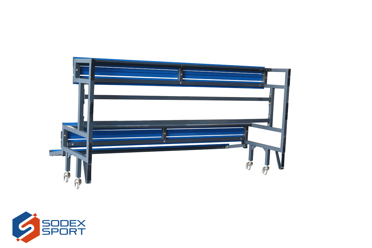 When not in use, these bleachers can be effortlessly flipped on their side, thanks to built-in wheels that facilitate smooth movement.