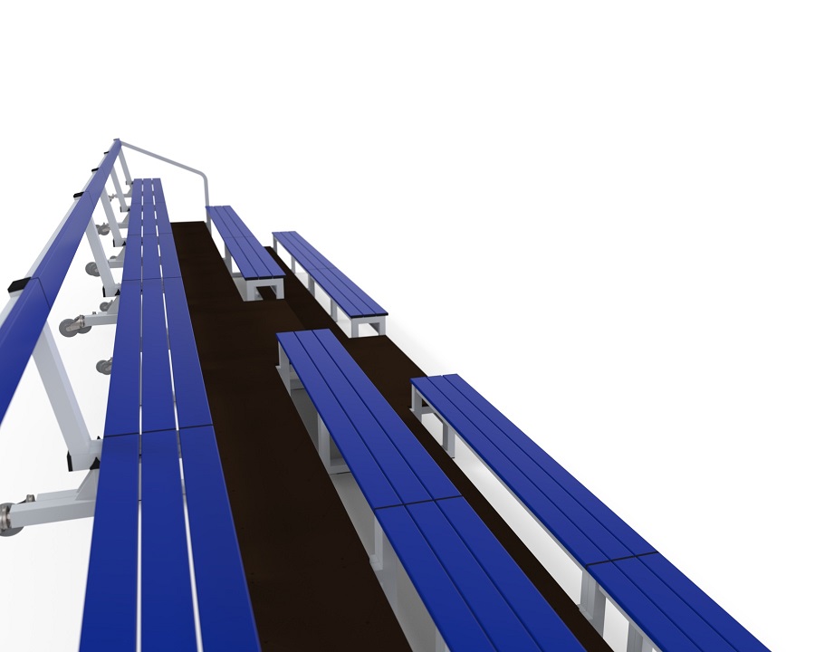 Furthermore, this design allows bleachers to be slotted into each other to optimize storage.