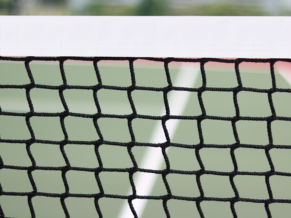 Mini tennis net in black Ø3mm polypropylene braided twine, 45mm single mesh with white PVC headband
