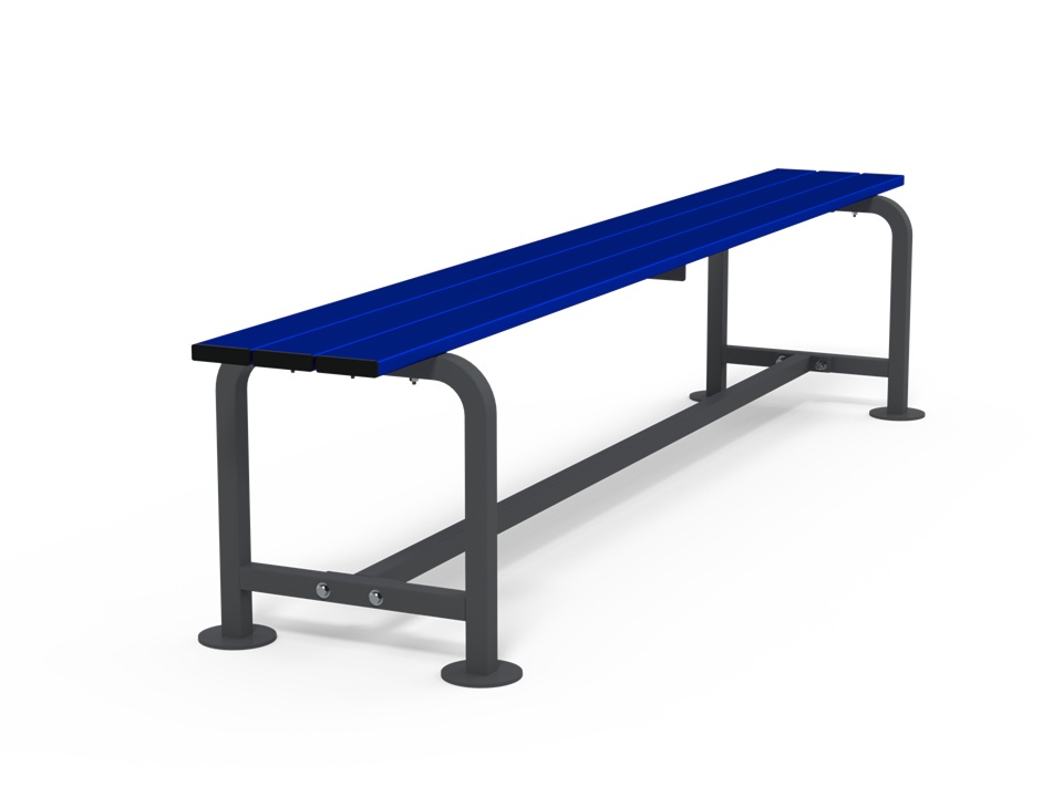 Mobile steel frame bench with aluminium seat. Powder coated. Length 2m.