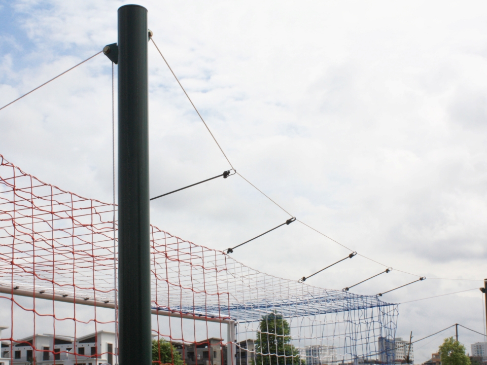 Easy tension thanks to the clam-cleat at human’s height. Suitable only for box shaped nets