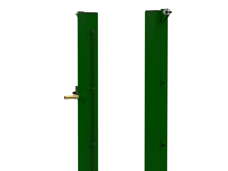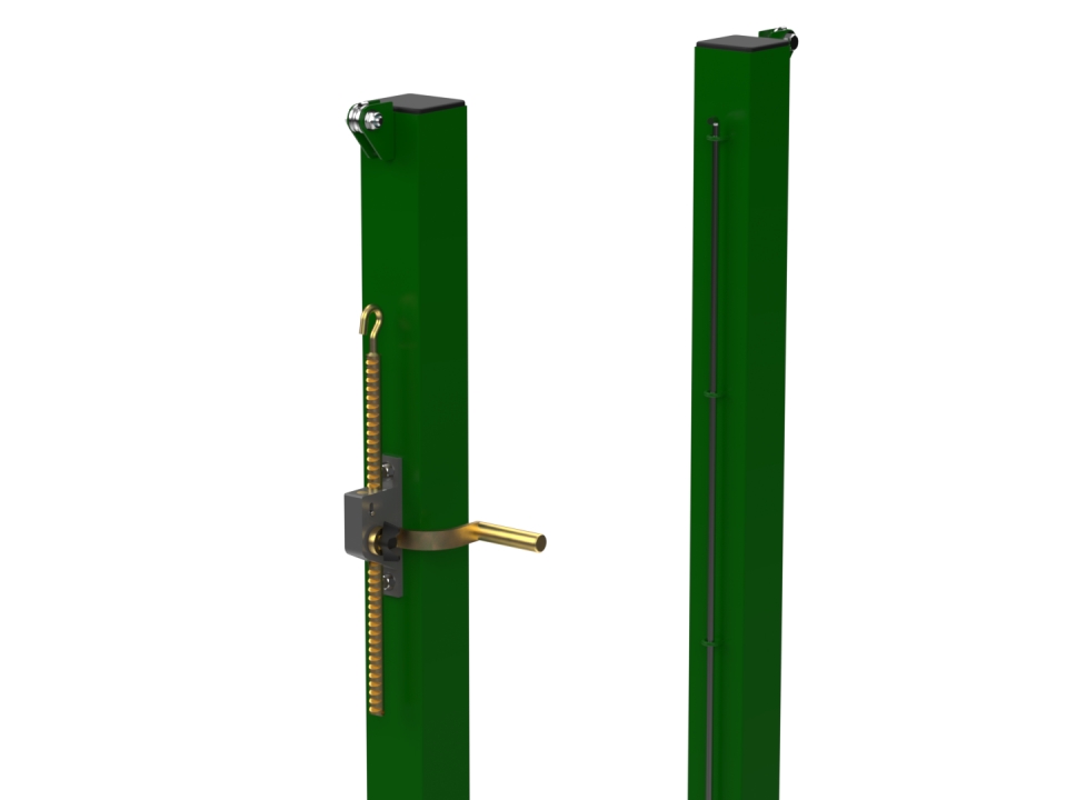 Tennis posts in green/white powder-coated galvanized steel.