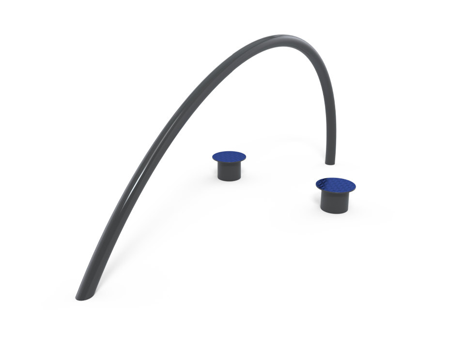 Two platforms mounted on springs, on either side of a support beam, reinforces balance and lower joints.