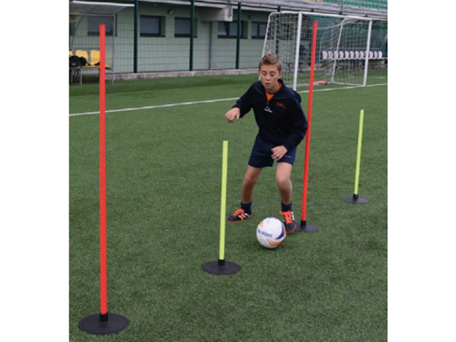 The telescopic slalom poles made out of Ø25/30 PVC tubes, used for training, come with 2 options: flat base for synthetic or anchor for natural pitches.