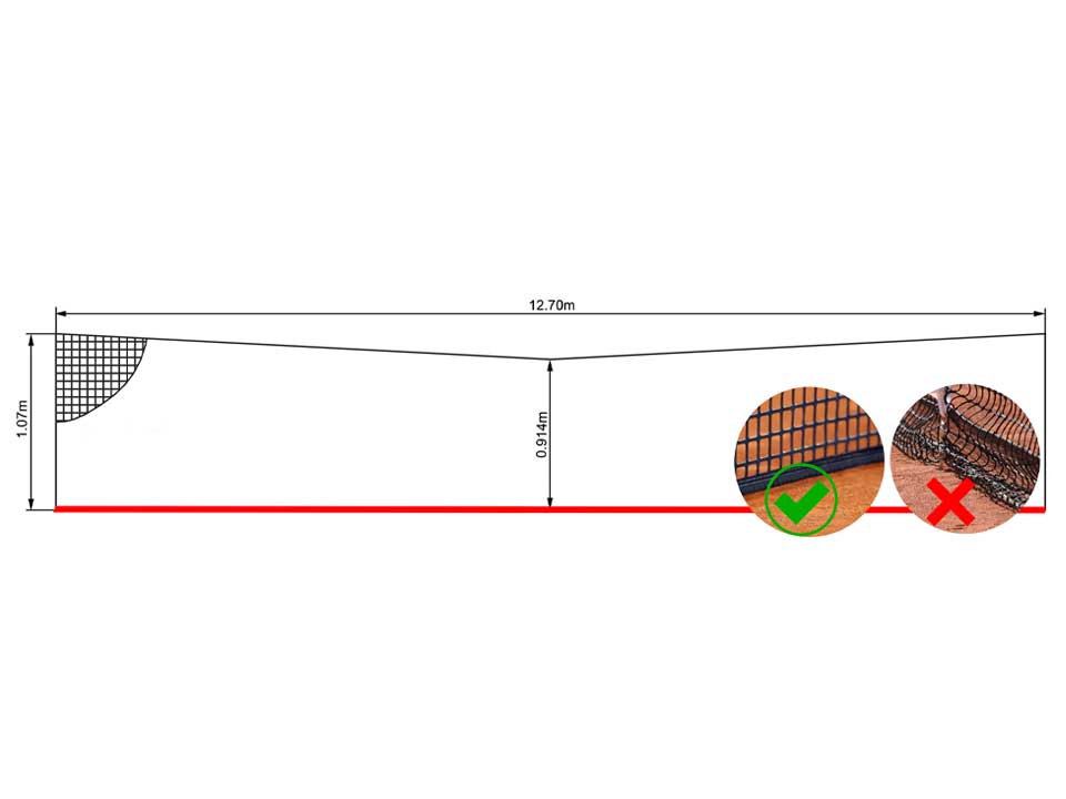 The net is sold with a polyester center strap to regulate height of the net to 0.914m.